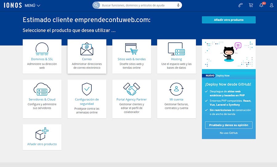 Si decides trabajar con Plesk, IONOS te ofrece este software de administración de manera gratuita. Es una herramienta práctica y segura que te brinda el control total de tu servidor. Podrás crear fácilmente nuevas bases de datos, asociar dominios, cuentas de correo, ver las estadísticas de tus sitios y gestionar tareas importantes.