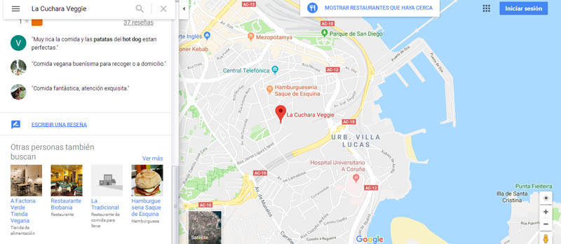 Una de las formas más sencillas de publicar una reseña es usando el propio buscador. Pídele a tu cliente que busque en Google el nombre de tu empresa. Si ya has creado previamente la referencia de tu negocio en Google My Business, aparecerá en los resultados de búsqueda junto a un mapa de Google Maps.