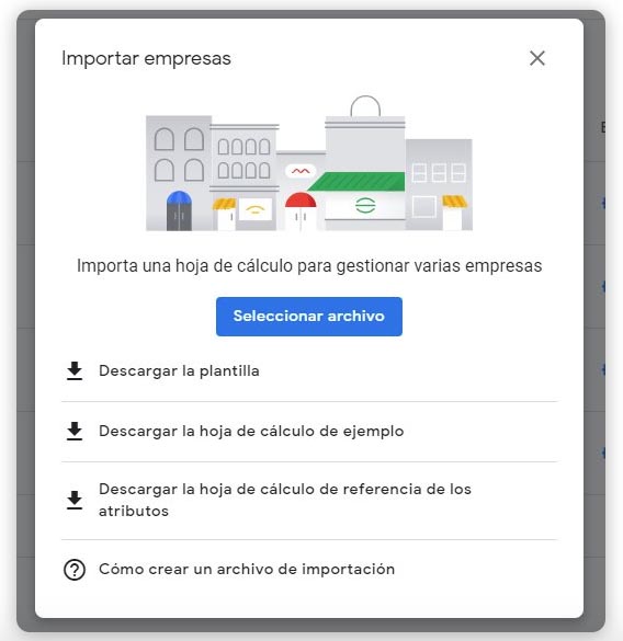 - Agrega todas tus direcciones: ¿tiene tu empresa diferentes sedes físicas? Inclúyelas todas en el apartado «Direcciones de Google My Business», de esta forma podrás posicionarte en diferentes ciudades o países. Si tienes más de diez ubicaciones diferentes debes añadirlas manualmente desde la pestaña «Grupo de ubicaciones». También puedes importarlas de forma masiva seleccionando la opción «Importar ubicaciones». En este caso debes descargar la plantilla que te ofrece la plataforma y, una vez rellenada la hoja de cálculo con todos los datos, volver a subirla para solicitar una verificación masiva.