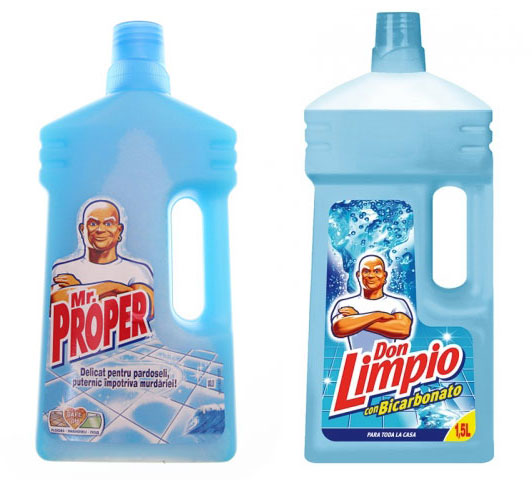 Un cambio del nombre de la marca implicará necesariamente un rediseño del packaging de todos sus productos. Un ejemplo es el caso del popular fregasuelos Don Limpio que antes se llamaba Mr. Proper.